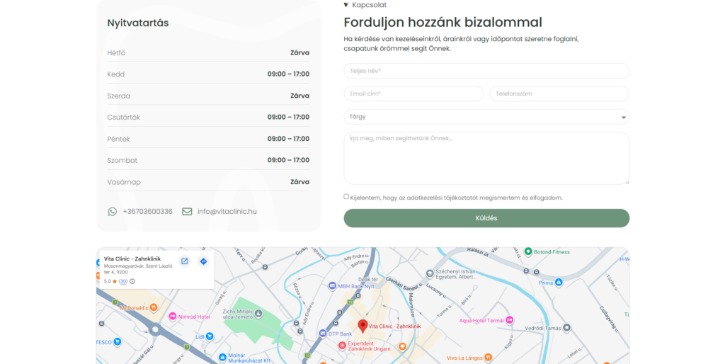 A VitaClinic weboldal nem csupán egy szolgáltatói felület, hanem egy olyan digitális tér, amely támogatja a tudatos döntéshozatalt és megkönnyíti a megfelelő fogászati ellátás kiválasztását. A cél egy olyan online jelenlét megteremtése volt, amely tükrözi a klinika szakmai színvonalát, és hozzájárul ahhoz, hogy a páciensek magabiztosan és biztonságban érezzék magukat a kezelések során.